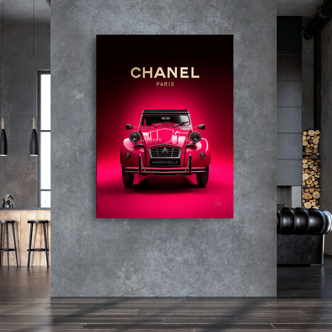 Elegantes Lifestyle-Motiv mit einem roten Citroën im ikonischen Chanel-Stil – perfekt für Wohnzimmer, Modeboutiquen, Designstudios oder exklusive Hotellobbys. Dieses Bild verbindet französischen Charme mit luxuriöser Ausstrahlung.