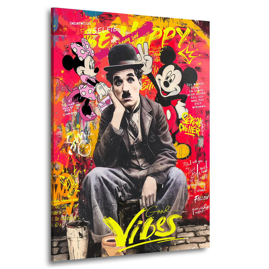 Pop Art Wandbild mit Charlie Chaplin, Mickey & Minnie – Good Vibes pur!