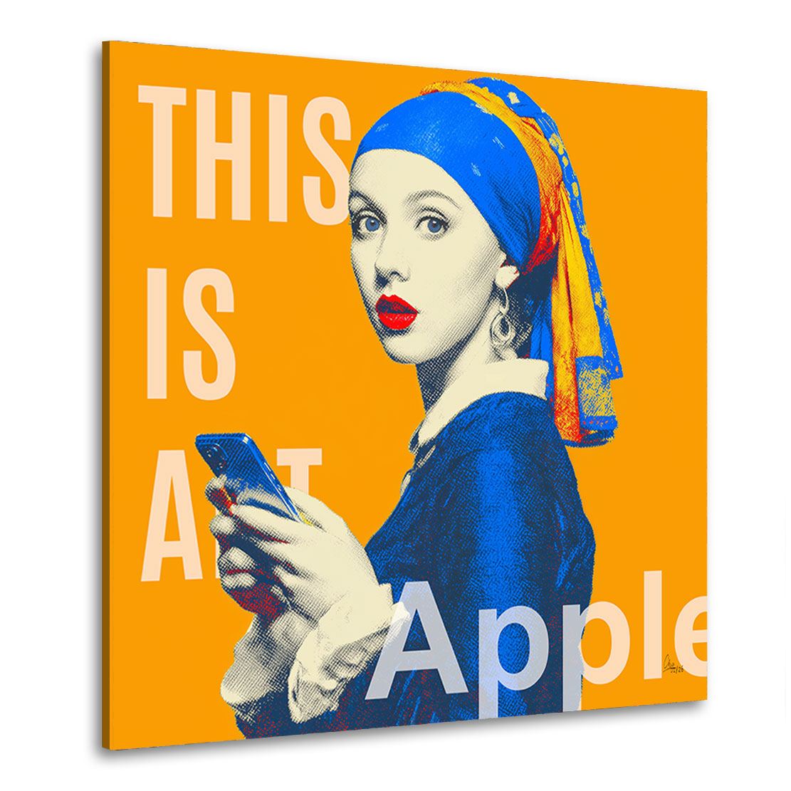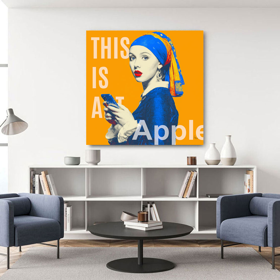 Modern interpretierte Version des klassischen Motivs „Mädchen mit den Perlenohrringen“ im Pop-Art-Stil. Kräftige Farben und Smartphone-Element setzen einen zeitgemäßen Akzent. Hochwertiges Leinwand Bild, hergestellt in Deutschland. Ideal für Wohnzimmer, Schlafzimmer, Büro oder Flur.
