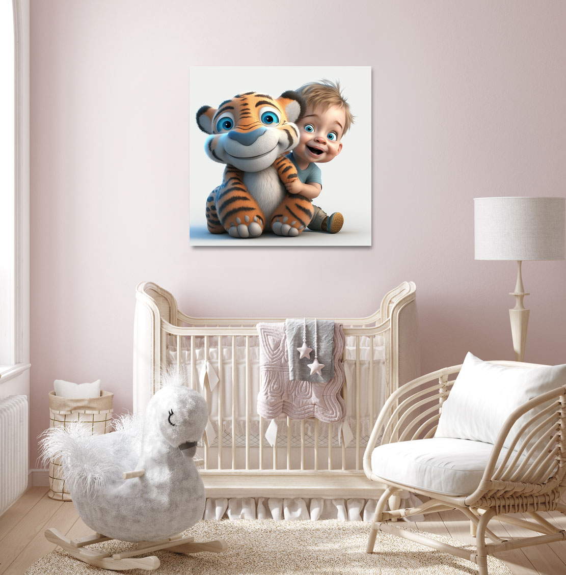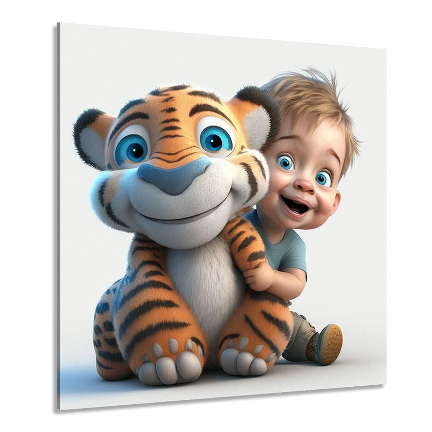 Leinwandbild Best Friends kleiner Junge mit Tigerbaby