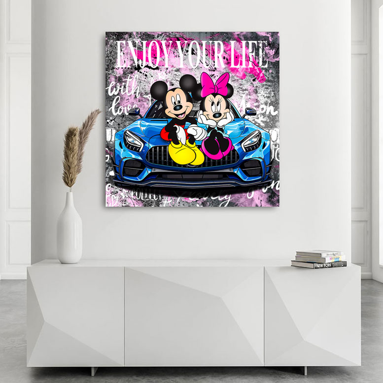 Modernes Pop Art Wandbild Micky & Minnie Maus Enjoy Your Life