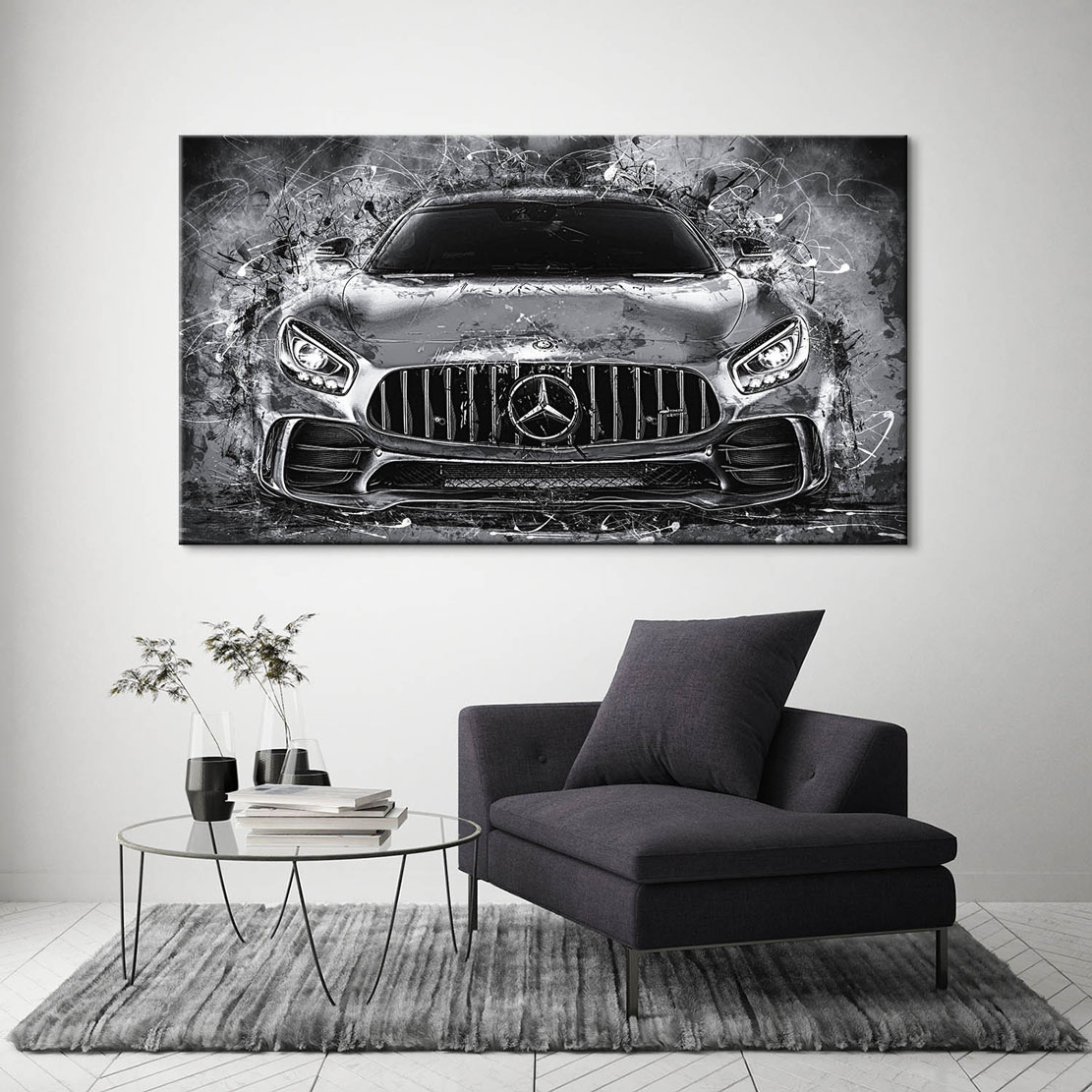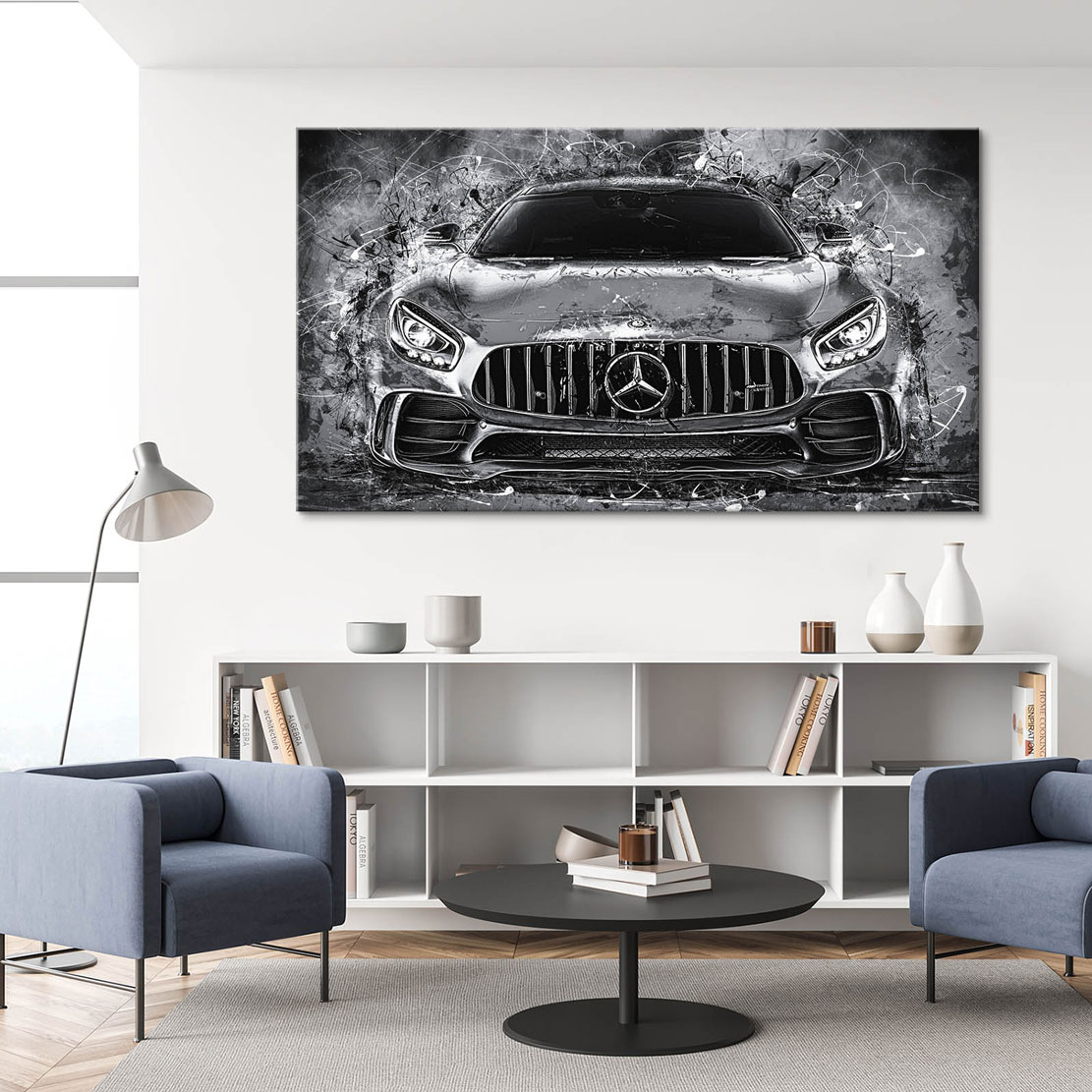 Modernes Auto Wandbild Mercedes AMG GT Abstrakt Black Style